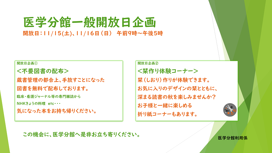 本館(木花キャンパス)・医学分館(清武キャンパス) 同時開催!